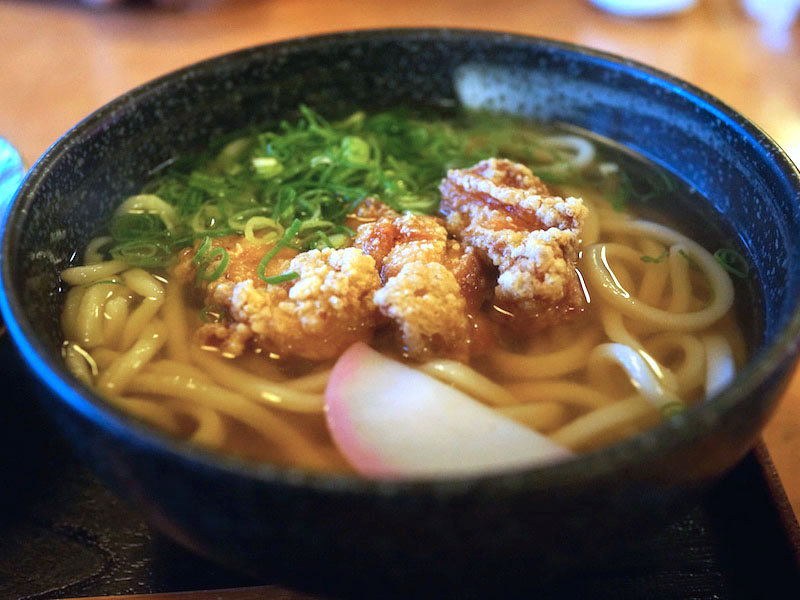 出汁が揚げ粉のに染みこんで、トロンと表面が軽く粘って唇撫でる。肉にもほどよく出汁が混じって、天ぷらうどんと違った味わい。なにより唐揚げラバーには新たな食べ方。オモシロイ。