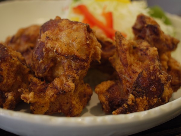 甘辛いタレに漬け込んで、ぽってりとした衣をつける。