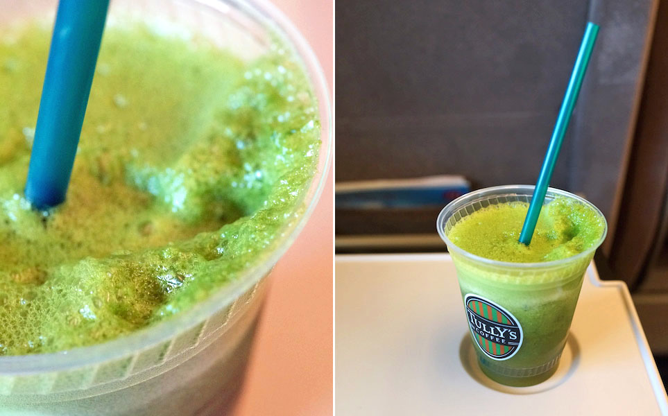 蓋を開けると緑の香り。上にはフックラ、泡がのっかりやさしい姿。ゴクリと飲むと、シトラス系の酸味と野菜の甘味と苦味。キリッと気持ちがひきしまり、2時間ほどの電車の旅がはじまった。