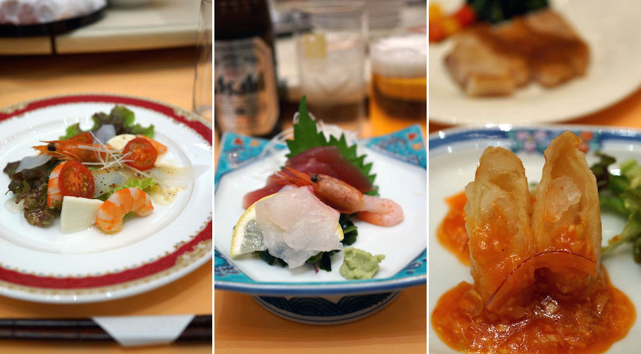 洋風オードブルからはじまって、刺身の三点盛りを経由し、結局、中国料理が次々食卓の上にやってくる。