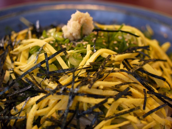 細めの麺を冷たい水でキュキュッとしめて、そこに出汁。