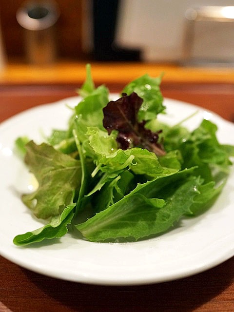 オリーブオイルと柑橘系の酸味と塩でハーブ野菜をドレスした、軽い食感のサラダを食べるとお腹がキューっと目覚まして、次の料理をおねだりします。