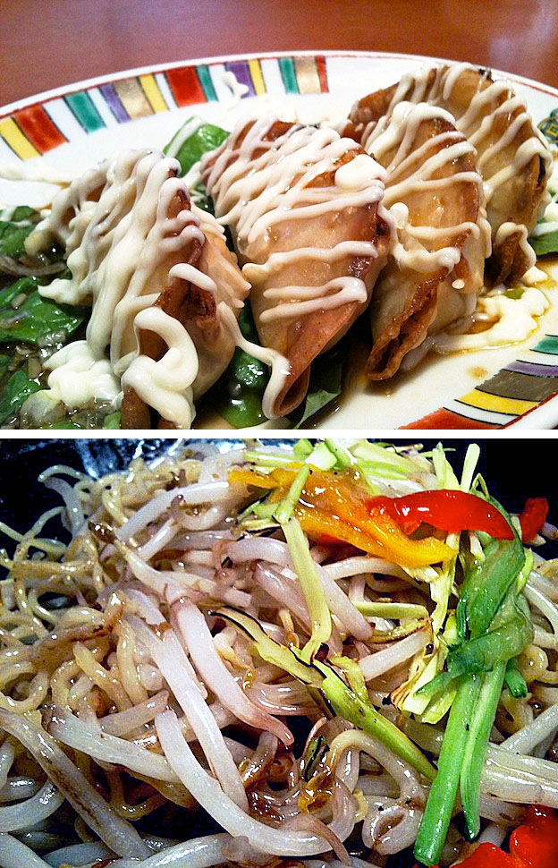 ここの名物の餃子を揚げてそこにチュチュっとマヨネーズ。