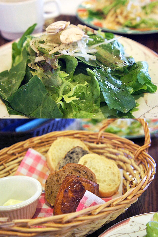 生の野菜にドレッシングをかければ完成っていうのではないレストランのサラダがうれしい、オゴチソウ。