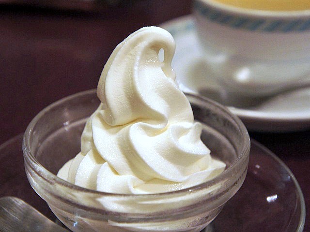 ミルクの風味がコッテリとした、けれどサラッと口溶けのよいお肉の後にピッタリの甘く冷たい〆の〆。