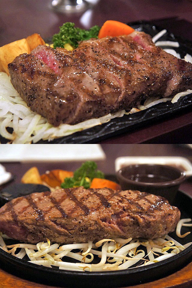 どちらも熱々に熱した鉄板の上に置かれジュウジュウしながらやってくる。
