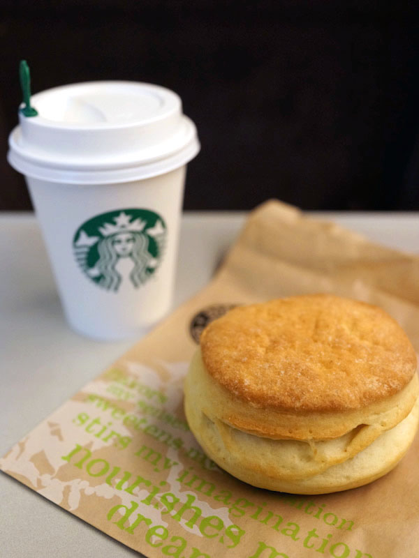 電車の座席のテーブルに、スタバのカップがあるだけで、なんだか「いつものボクの場所」になってくれたような気がしてホッとする。旅のお供にありがたい。