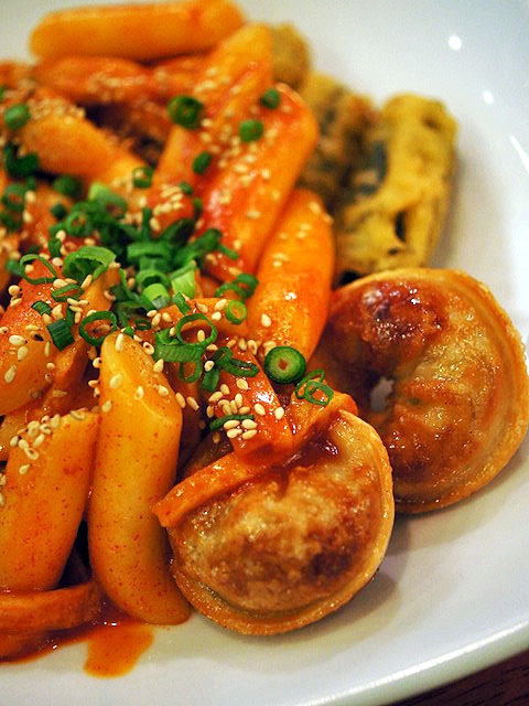韓国ではおやつ感覚で食べられるコトがおおい料理で、辛さよりも甘さが前面に押し出されてる。