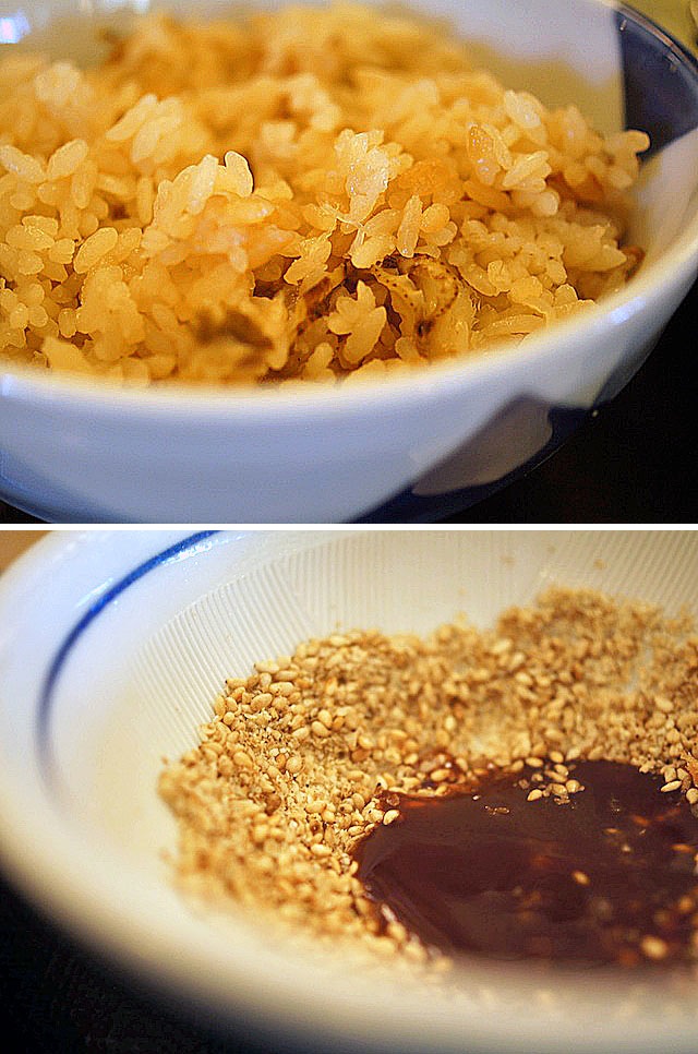 胡麻をすり、そこにソースを注いで味と風味をつけるというこの食べ方も、今ではすっかり一般的になったけど、昔はビックリしたものでした。