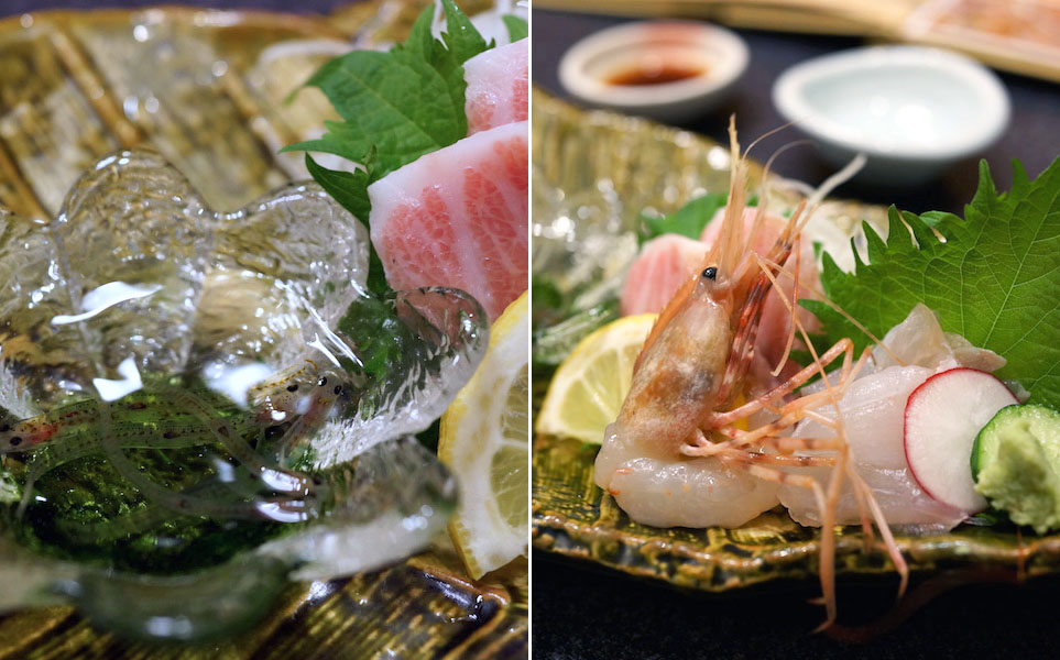 甘エビに白身の魚に大トロに、活きたシロウオ。