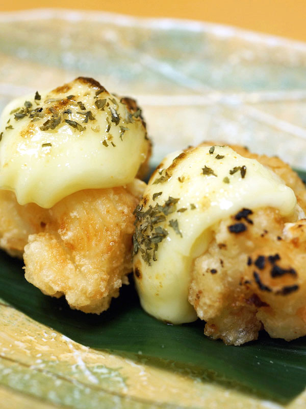 軽く衣つけ揚げたカニの肩肉。そのまま食べるとバッサリとして、崩れてしまう部分の肉が、衣で包まれフックラ仕上がる。