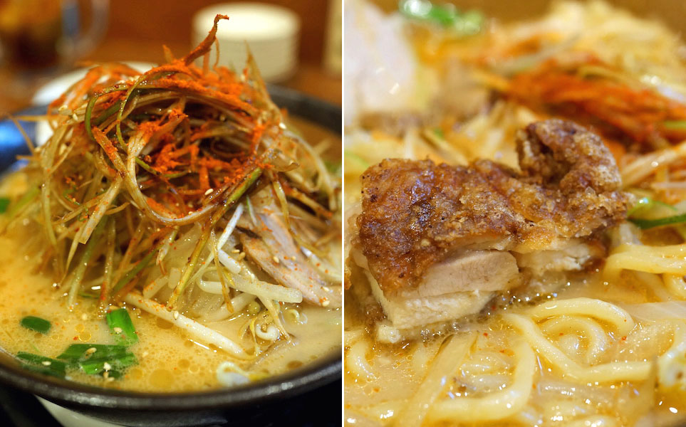 白髪ネギにタップリ、赤い唐辛子。おろしたニンニクもタップリくわえて寒い夜には体がぽかぽか温まる。
