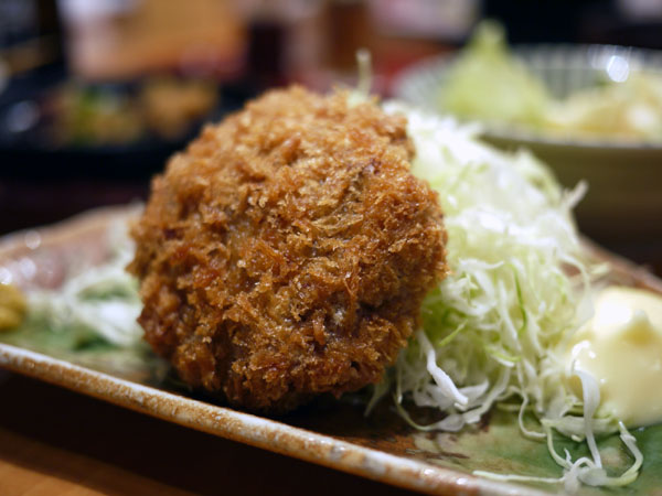 揚げる素材は脂や肉汁が多けりゃ多いほど、パン粉や衣の軽い食感が引き立って、だからメンチはこうした居酒屋の揚げ物料理のベストチョイスの一つでしょうな。