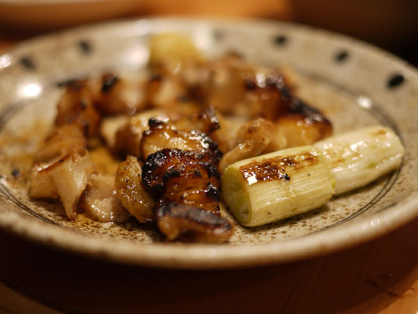 鶏皮、シロにネギ、餅ベーコン。