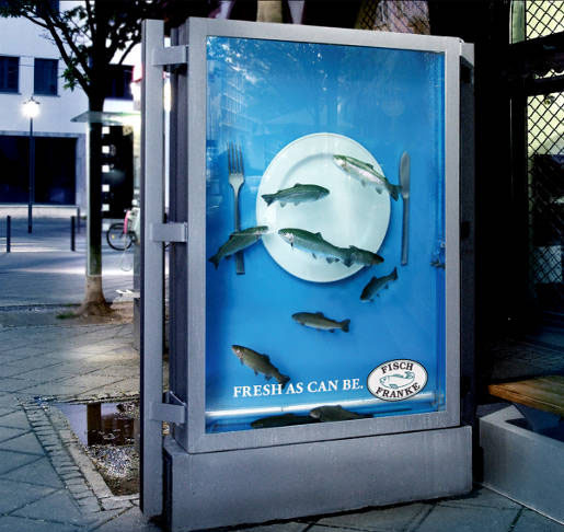 つまり、この看板自体が水槽になっていて、中に生きた魚が泳いでいる…、という構造。