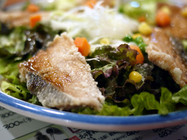 暑いベトナムの料理はどしても体を冷ます料理が多くて、こうした熱々揚げ物も生の野菜の上にのっかりやってくる。