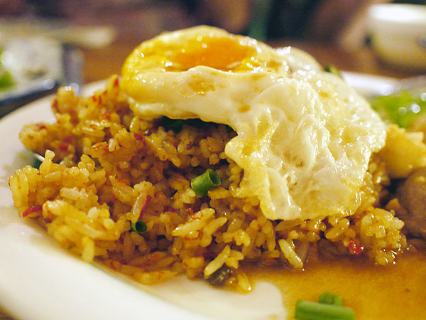 エビの味噌と玉子と一緒にご飯を炒めたタイ風チャーハン。