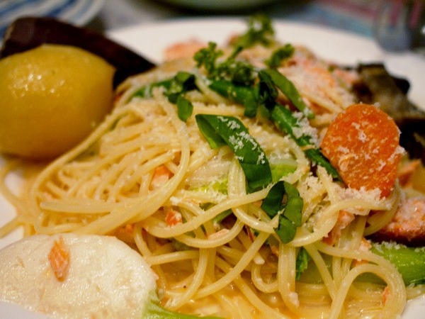 サーモンクリームのスパゲッティ。
