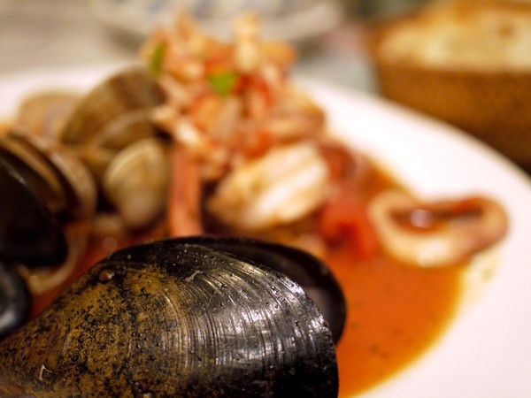 シーフードのトマトソース煮っていうのがあって、まるでスープ少な目のブイヤベースみたいな料理。