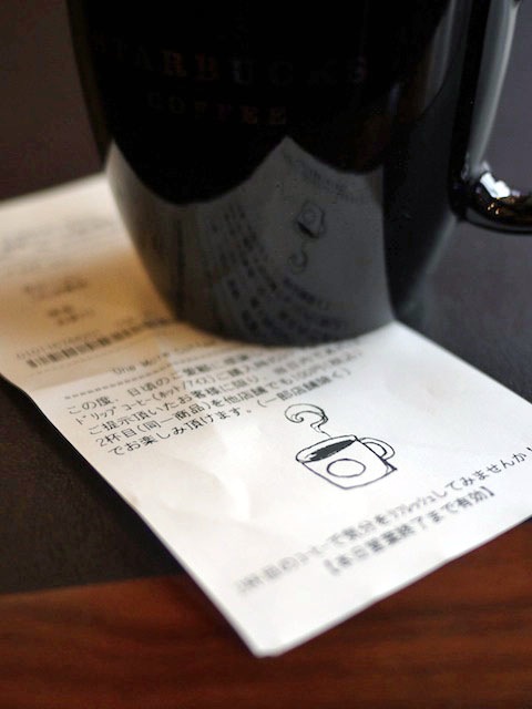 ドリップコーヒーを飲んだら、100円でどのお店でももう一杯だけお替わりできるっていうサービス。