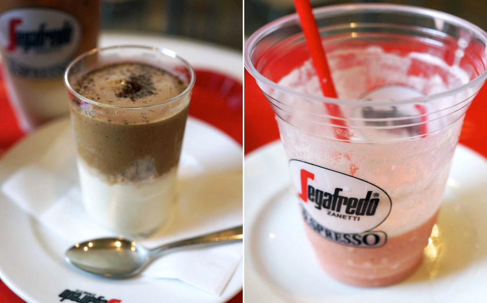 アイスラッテを一番大きなカップでもらい、それと一緒にブラッド・オレンジのグラニータ。
