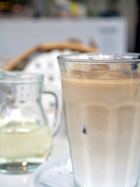 たのんだカフェオレをパチッととると白くうつった。