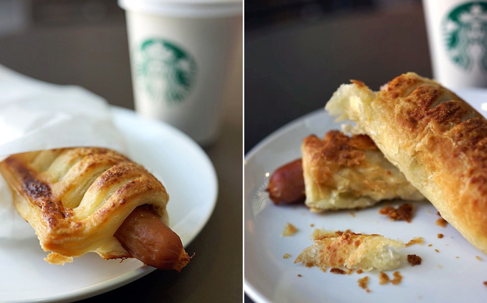 ソイラテたのんで、ショーケースの中をみるとソーセージパイがある。