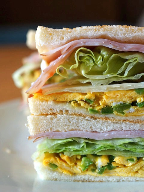 パンやハム、レタスの欠片が舞うように口の中に散らかって、それを最後にピーマン玉子がひとつにまとめる…、カサカサ焦げたパンの食感、レタス、ピーマンのみずみずしさが互いに混じってお腹を満たす、オゴチソウ。