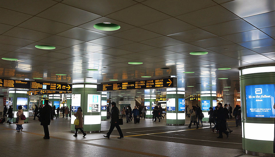 昼なおくらいコンコースから視線を斜めに向ければそこには、吸い込まれるような青い空。超高層ビルにキラキラ朝日が映って見えて、こんな景色はそうこうどこにもあるものじゃなく、それを見ないで歩くだけ。