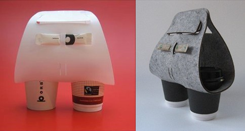 2つのコーヒーをくるんと半分包むようにして、簡単にそしておしゃれに持ち運ぶことができるようになる。