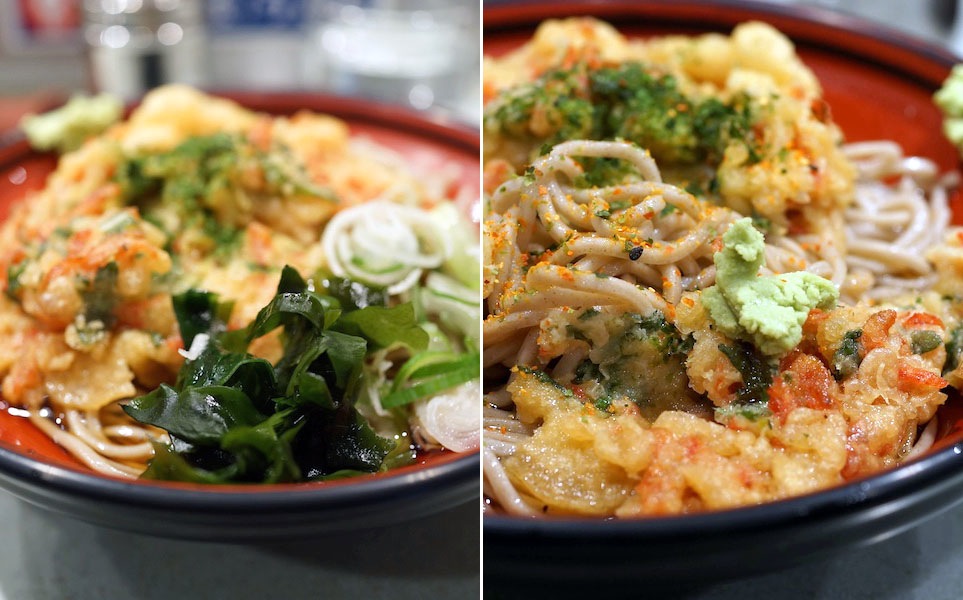 このかき揚げもまたおいしくて、決して揚げたてというわけじゃない。端はバリバリ、揚がった油の風味がたのしく、衣はふっかり、エビがカリカリ奥歯で壊れてうま味をジュワッとにじませる。
