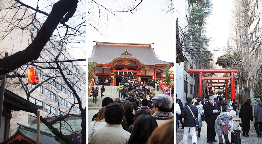 明治神宮とか川崎大師とかいろんなところから人を集める有名神社とは違って、あくまで新宿にやってくる人のための神社のようなところですから、何十分もって待ちの行列ではないけれど、20分近くは並びましたか。