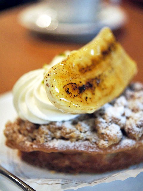 それから表面、カラメライズしたバナナスライスをのせた姿、凛々しくおいしそう。