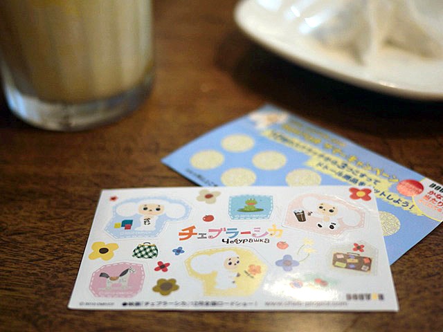 チェブラーシカのシールをもらって、かなりゴキゲン。