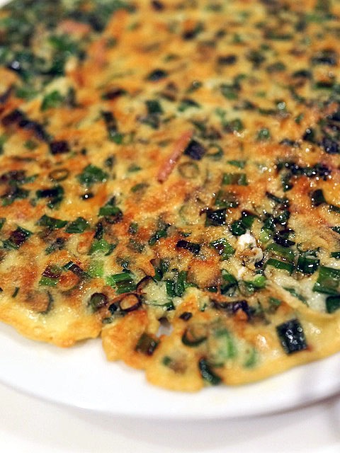 ネギがシャキシャキみずみずしさを失わず、フックラとした生地とツナのうま味がおいしい…、ところどころに潜んだ生姜の香りがスキッと鮮やかで、ねぎ焼きというより沖縄の「ヒラヤーチー」のような食感、味わいで、気持ちが南に向かってく。