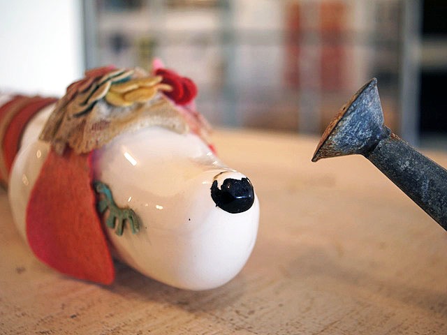 そのふるぼけて、のどかな空間のいろんなところに彼のアート作品がおいてある。