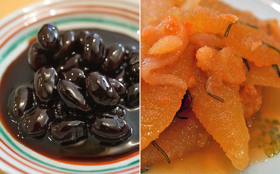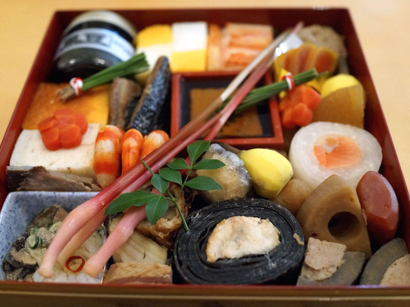 牛蒡の八幡巻きやら穴子を巻いた煮しめた昆布。鮭を巻いた大根だとか、丸い料理が多いところは、万事円満を願ってでしょう。