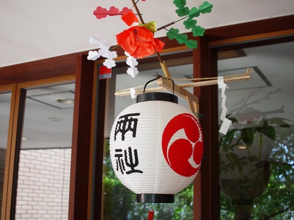 うちのマンションの軒先にも、祭り提灯がぶら下がる。