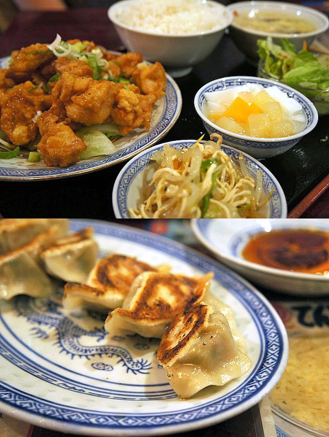 二種類あって、ひとつが八宝菜、もうひとつが鶏唐揚げでやっぱり唐揚げ定食にする。