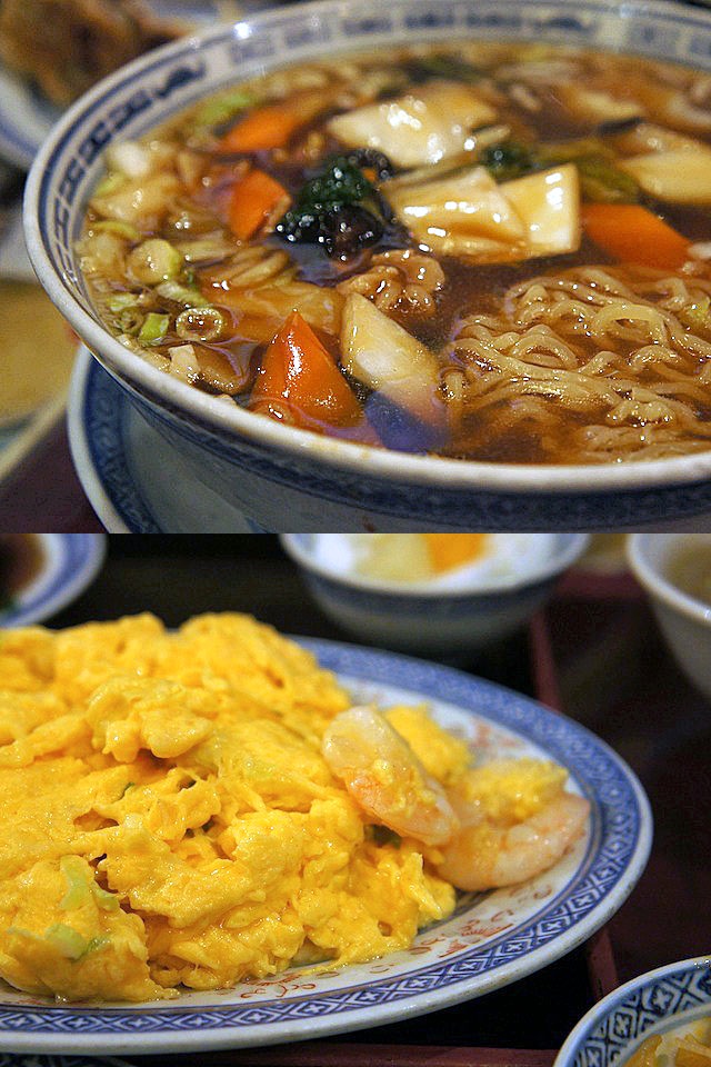 エビと玉子の炒め物をサイドにとって一緒に食べる。