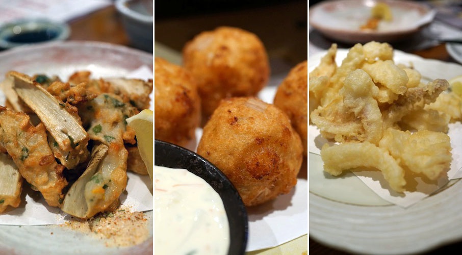 切り身になった胴体部分を刺身で全部食べ終えて、残った足と耳の部分を天ぷらにして下さいな…、と揚げてもらった天ぷらの、これまた甘くておいしいコトに身悶えしながら焼酎を呑む。