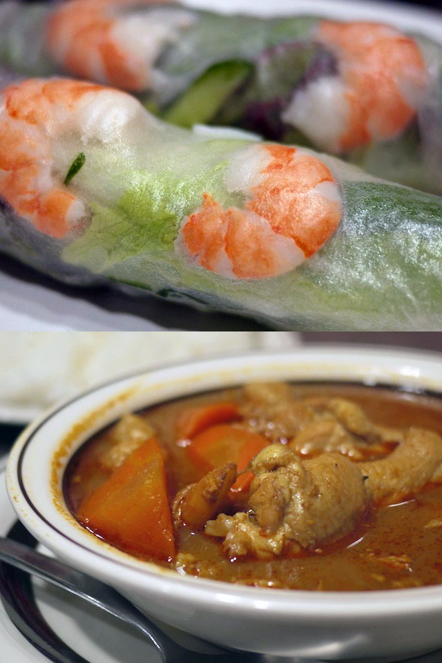 サラサラスープで辛さと旨みのバランスがほどよいカレーに、セットの春巻き。
