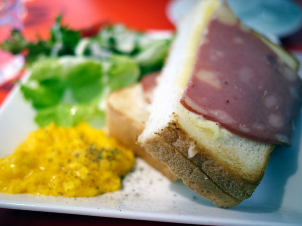 ハムトーストにサラダにそれからスクランブルエッグ。