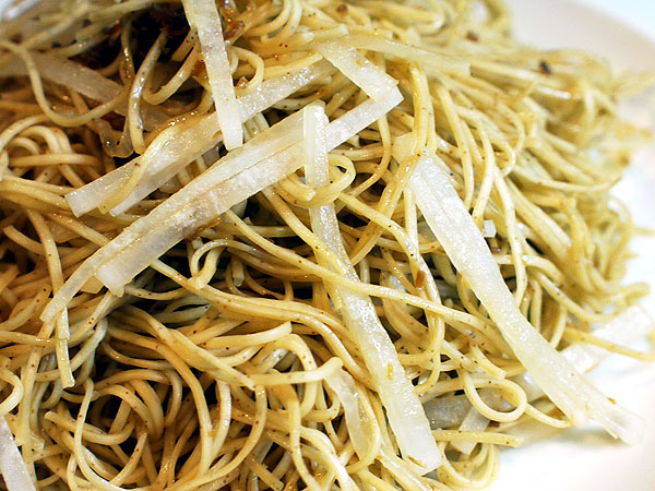 炒めるようにその大根に火を通しつつ、同時に麺の水気をカラっと吐き出さす。