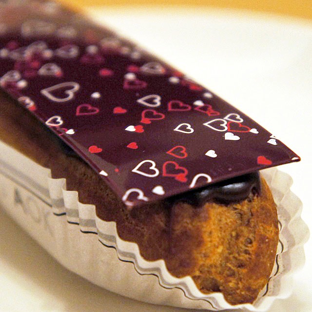 まもなくバレンタインデーというコトもあり、上に薄いチョコのシートがのっかる。