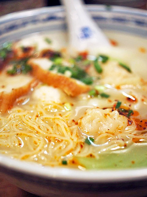 フィッシュボールにエビワンタン、魚のすり身を混ぜた厚揚と具材も豊富で鶏がらスープもスッキリ、上等。
