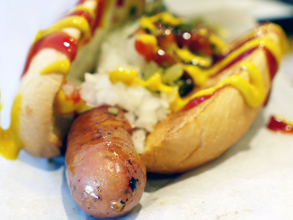 ほとばしり出る肉汁に、スモークされた香りが上等で、おやおやココのホットドッグは熱々グリルソーセージを熱々のまま手づかみにして食べる料理って、感じた次第。