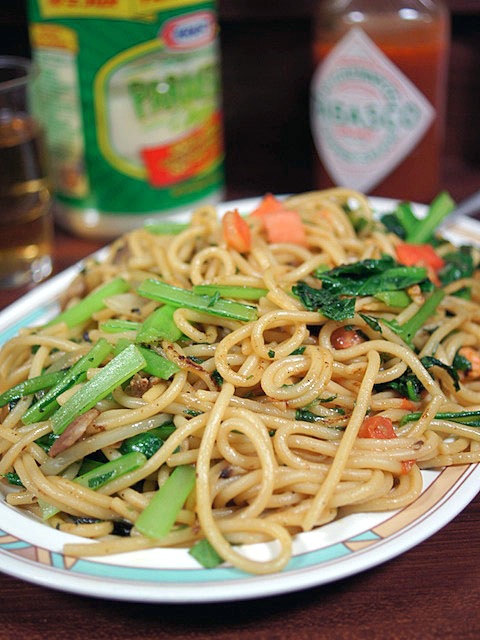 どちらも業務用サイズのバカデカイものでありまして、それに比較してこのスパゲティーの盛りを推察してください(笑)…、これで大盛り。