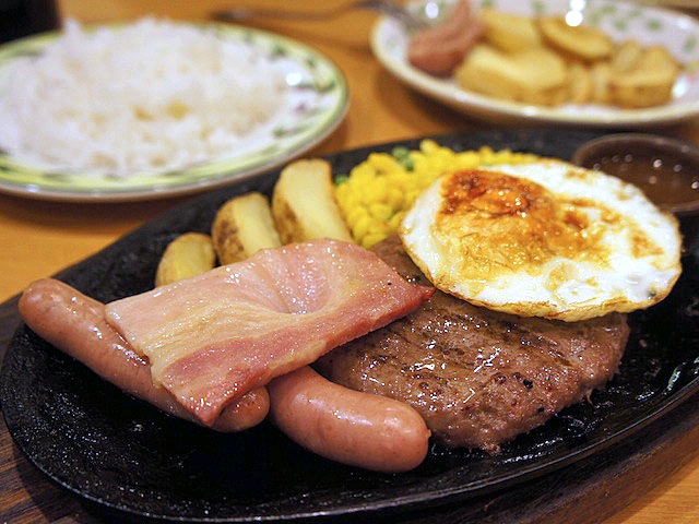 つまりハンバーグかチキングリルのようなモノを食べている。