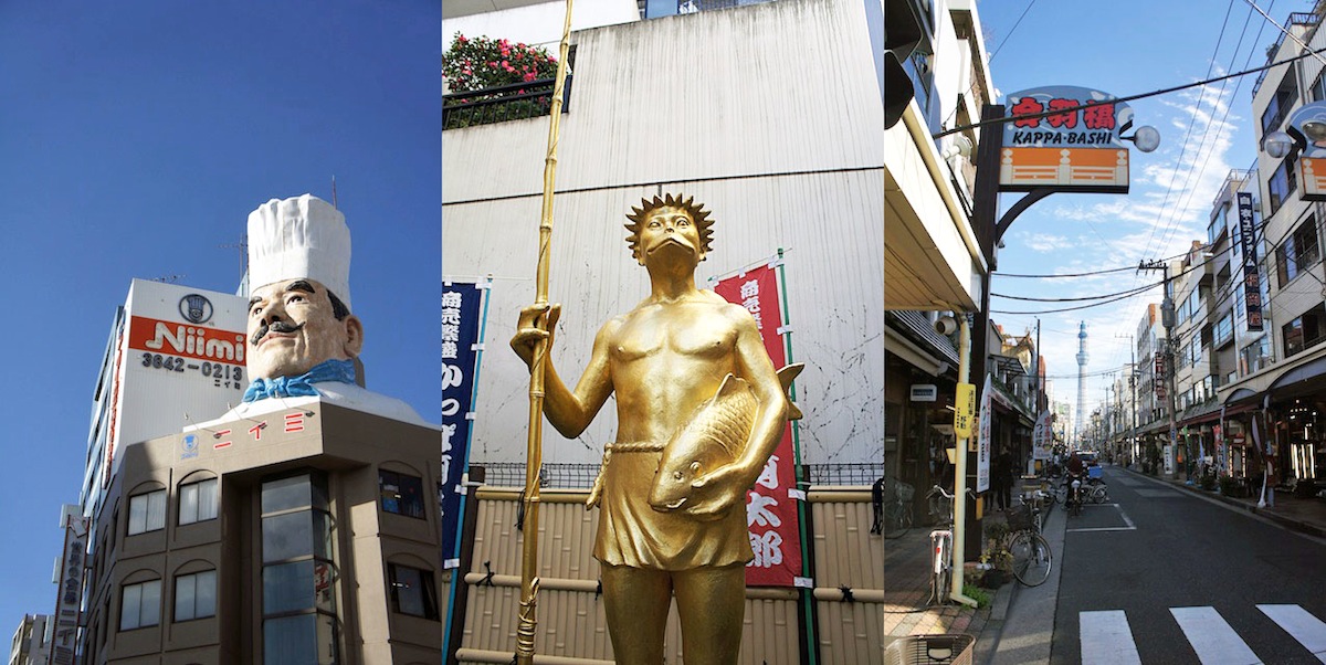 飲食店の食器、調理器を中心にして、備品や厨房設備をあつかう店が並んで独自性を競っているのがたのしい地域。